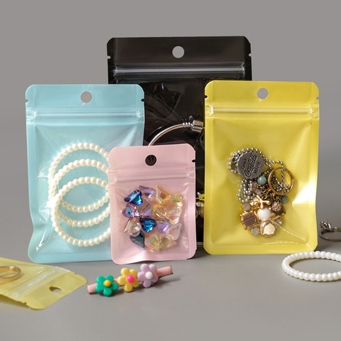 6x8cm Full Clear Front Colorful Back Resellable Pequeño Mini Accesorios Joyería Bolsas Ziplock de plástico con orificio para colgar